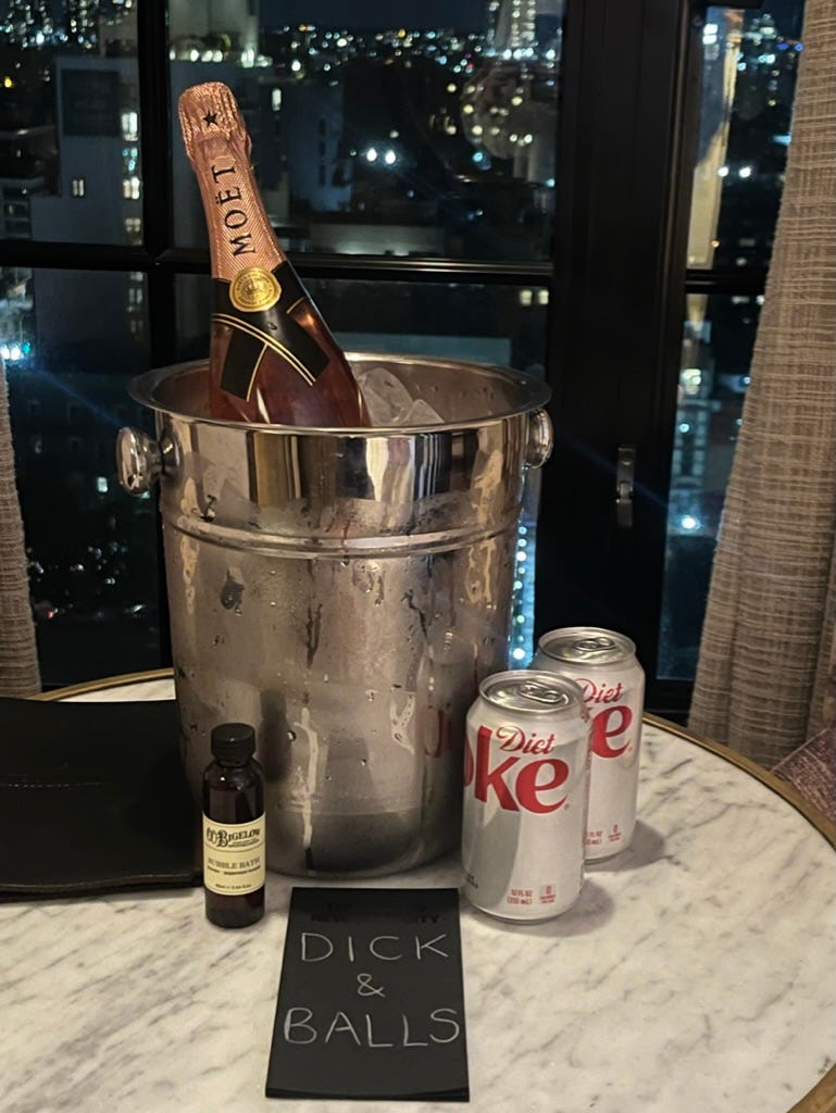 A big deep bathtub with a view big enough to swim in, and diptyque-branded mr. bubble
